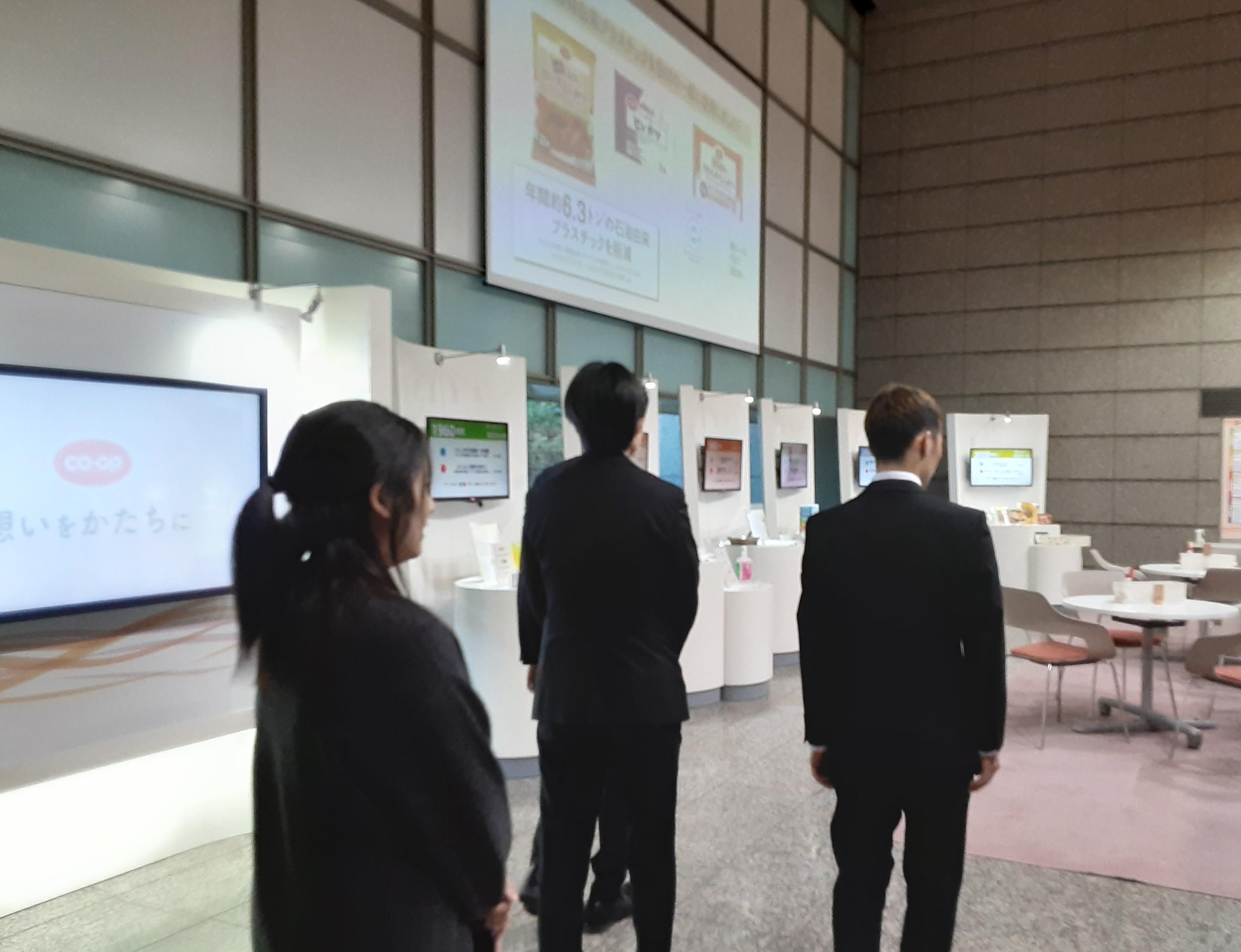 館内の展示コーナー見学では、コープ商品の特徴や協同組合の考え方に触れ、参加者の皆さんは熱心に見学していました。